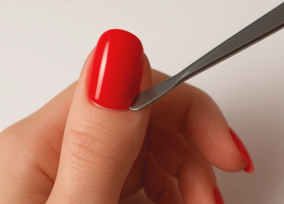 If any adhesive residue remains on your nail, soak a cotton pad with acetone-free nail polish remover and gently wipe it away.